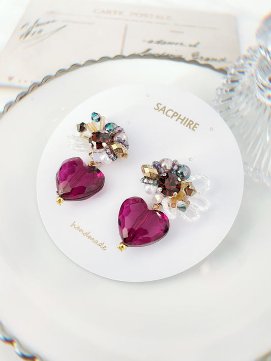 Dreamy Heart Shaped Crystal Embroidered Earrings